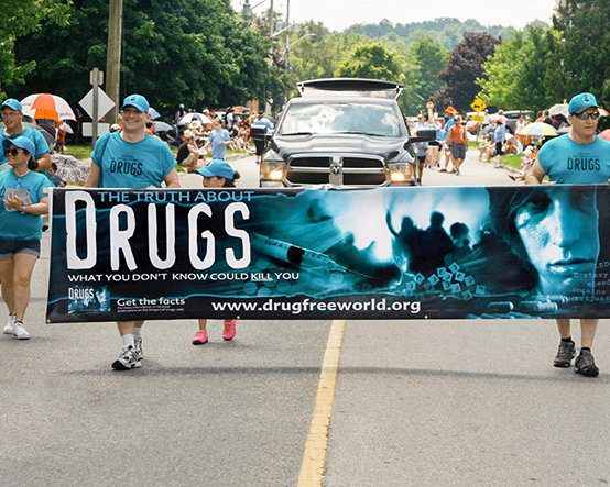 Drugsvrije Wereld Canada sluit zich aan bij de Canada Day Parade om jongeren te vertellen over de feiten over drugs.